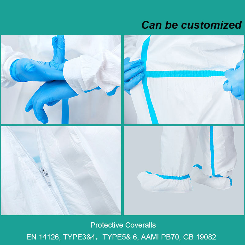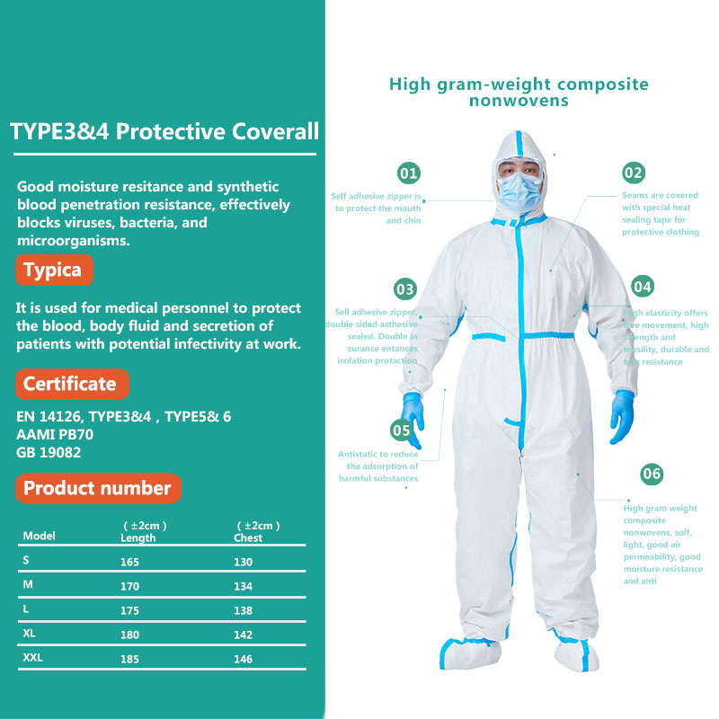 | Kayan abu | 1. SMS, Anyi Daga Hydrophobic SMS 2. 63g PP + PE Bi-lamination abu tare da cikakken Taped 3. PPNW/SMS(Spunbond + Meltblown + Spunbond mara saƙa + PE lamination). 4. PP, Anyi daga Hydrophobic Polyropylene |
