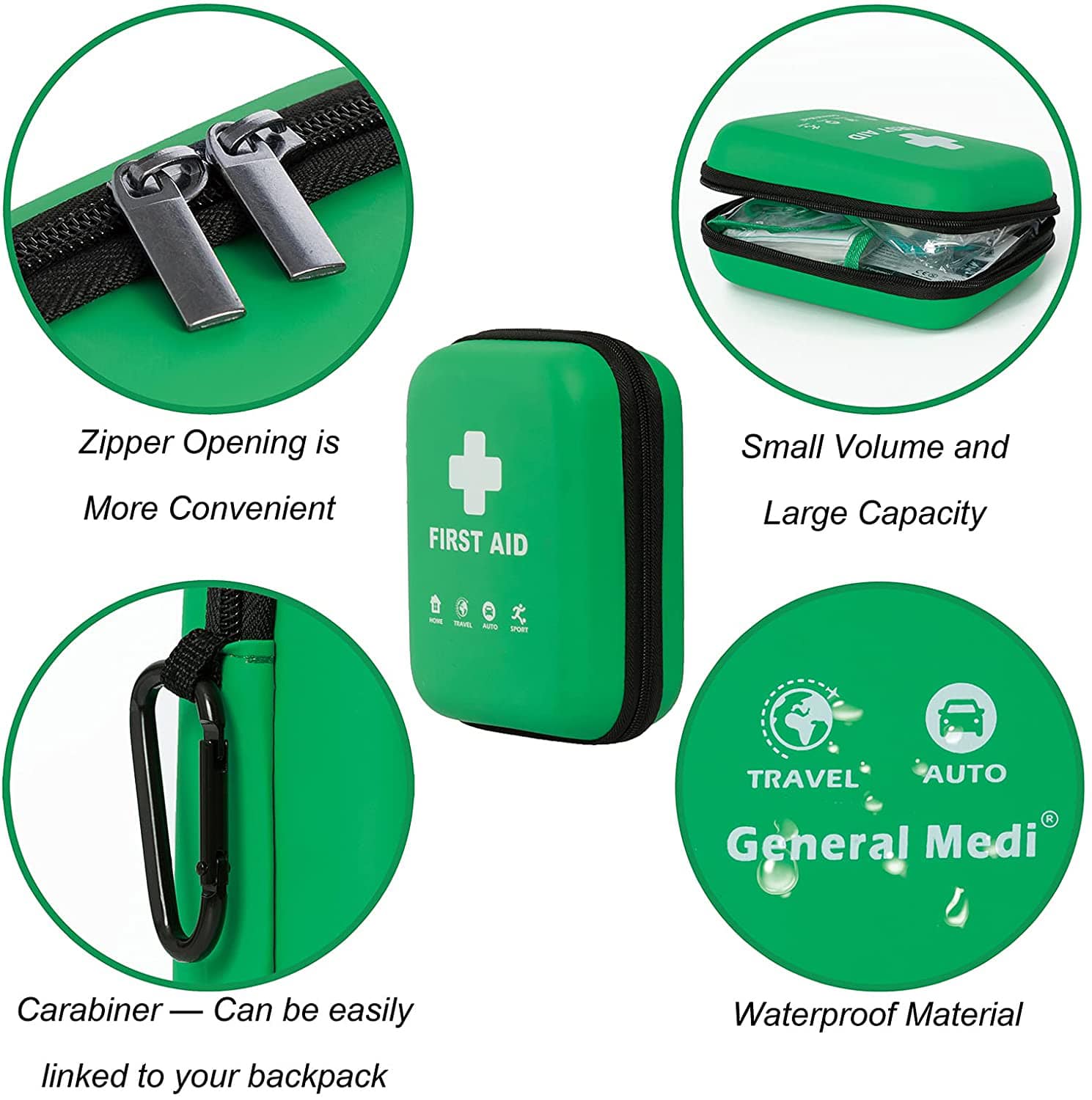 Aikace-aikacen Katin Taimakon Farko na Green Hard EVA: Ka ba da gidanka, motar ofis, wurin yin sansani da ƙari tare da wannan kayan aikin agajin farko.
